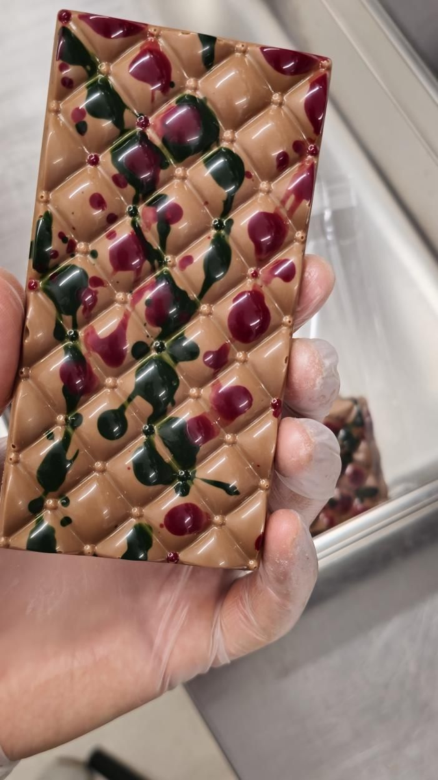 Milk chocolate bar with pistachio paste